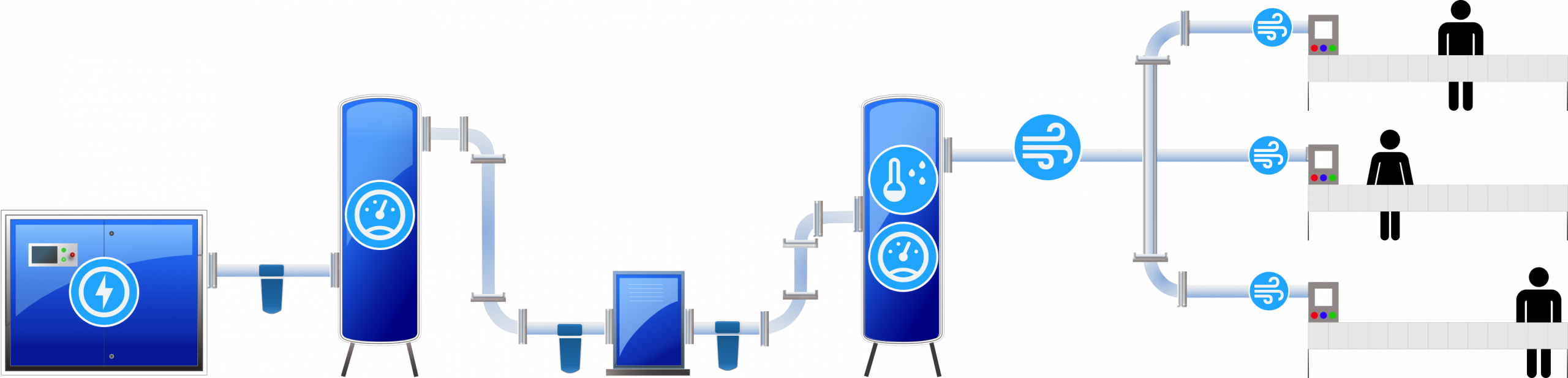 Monitoring ciśnienia pozwala na bieżąco kontrolować jego stabilność i identyfikować spadki – przede wszystkim te na stacji uzdatniania (filtry, osuszacze) oraz w rozległej sieci rurociągów.