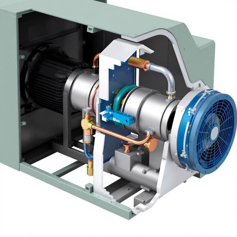 Sercem urządzenia jest blok śrubowy, w którym proces kompresji odbywa się poprzez obrót dwóch wirników (śrub) – męskiego i żeńskiego. Przestrzeń międzyzwojowa zmniejsza się w miarę przesuwania powietrza wzdłuż wirników, co powoduje wzrost ciśnienia. Do komory wtryskiwany jest olej, który pełni trzy funkcje: uszczelnia, smaruje i odbiera ciepło powstające podczas sprężania.